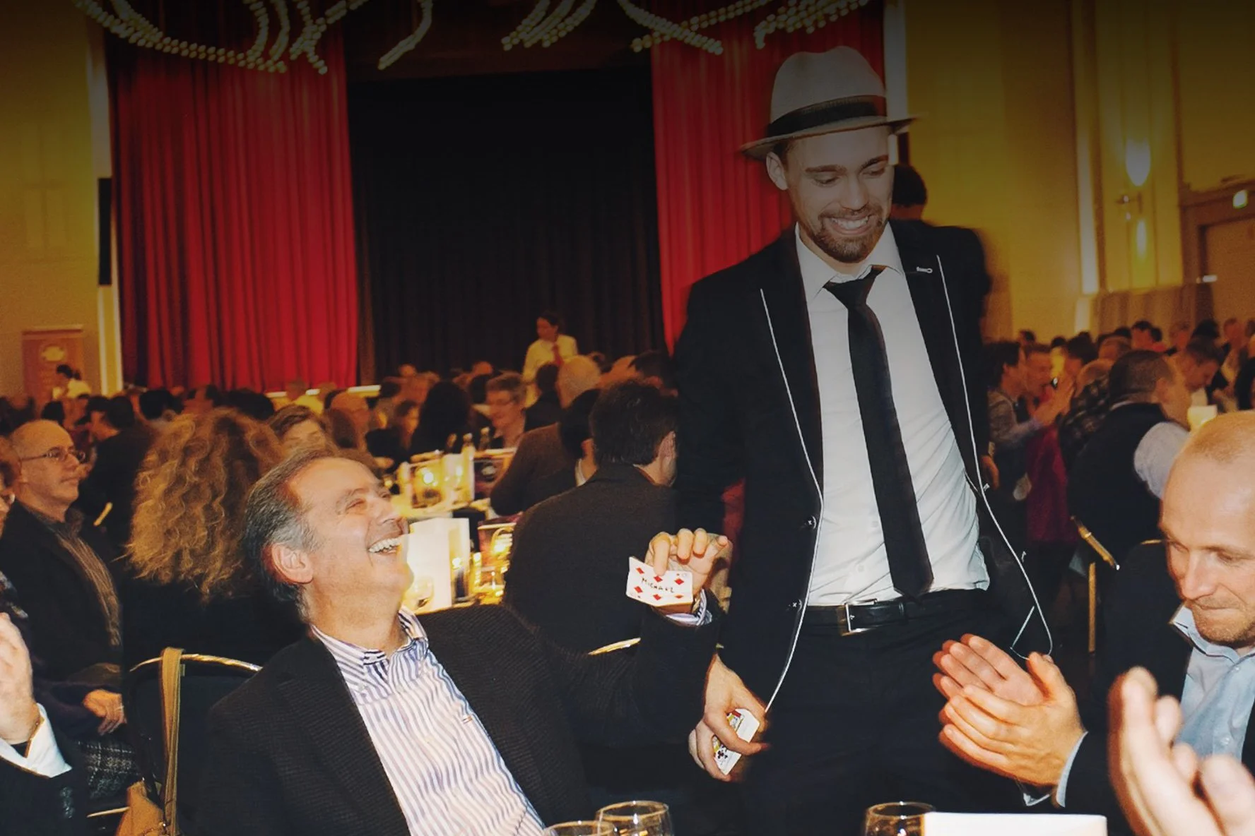 Als Close-Up-Zauberer verblüfft Kai Wiedermann nicht auf der Bühne, sondern an den Tischen der Gäste oder als „walk act“ im Publikum. So ensteht an jedem Tisch und für jede Gruppe eine einzigartige Show.