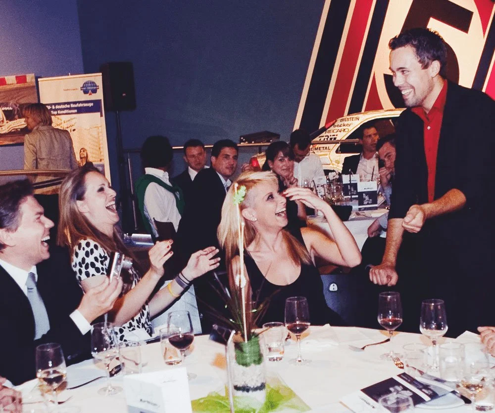 Darüber hinaus trete ich bundesweit bei Firmenveranstaltungen, Messen, Galas und exklusiven Events auf. Vereinzelt führten mich Engagements sogar nach Zürich und Mallorca.